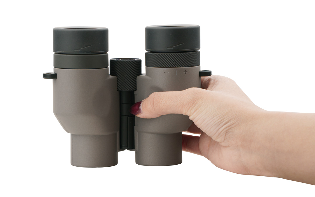 The binoculars are designed so that when you hold them in your hand, the entire inside of your fingers, from your pinky to your index finger, will fit snugly against the body. There is also a recess where your thumb will rest, making it easier to hold. Large parts are used for the operating parts, such as the focusing wheel and diopter adjustment ring, making them easy to operate not only with bare hands but also when wearing gloves.
