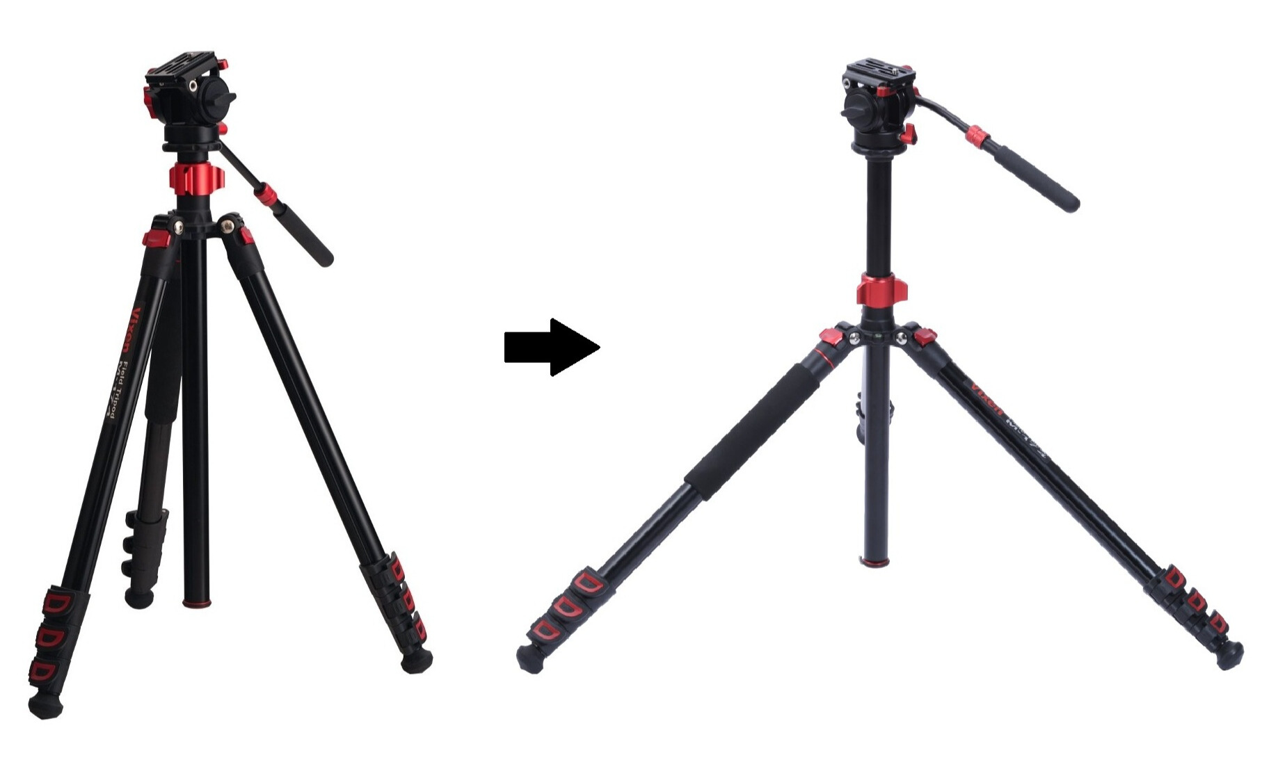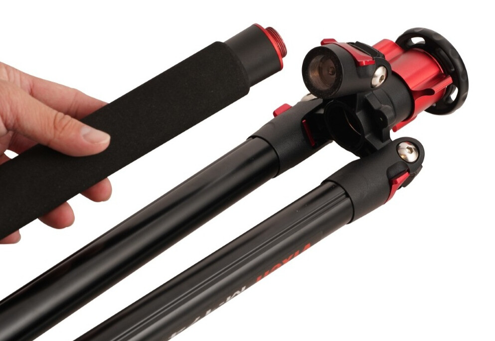 In addition to being able to use it at normal height, by replacing it with the included short center column, you can also shoot from a low angle close to the ground (low-angle shooting). You can also remove one leg and use it as a monopod, which is useful in tight spaces or when shooting handheld.