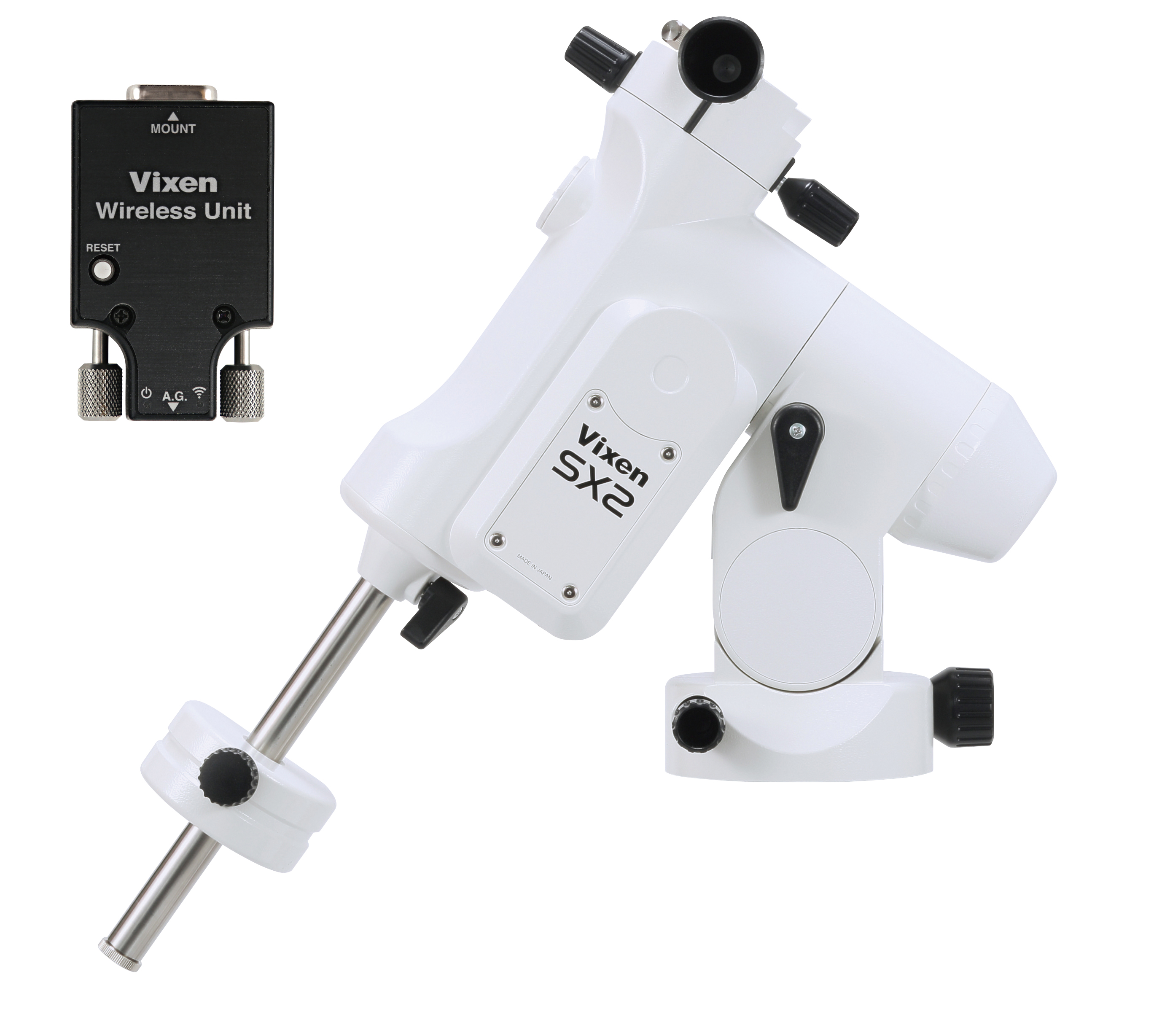 The SX2WL equatorial mount is the most affordable model in the SX series, which is designed for full-scale astronomical observation. It features micro-step-driven pulse motors—also used in the higher-end models of the series—and five bearings to ensure smooth, stable operation. In combination with a smartphone, it allows automatic GoTo slewing for an effortless, comfortable observing experience.