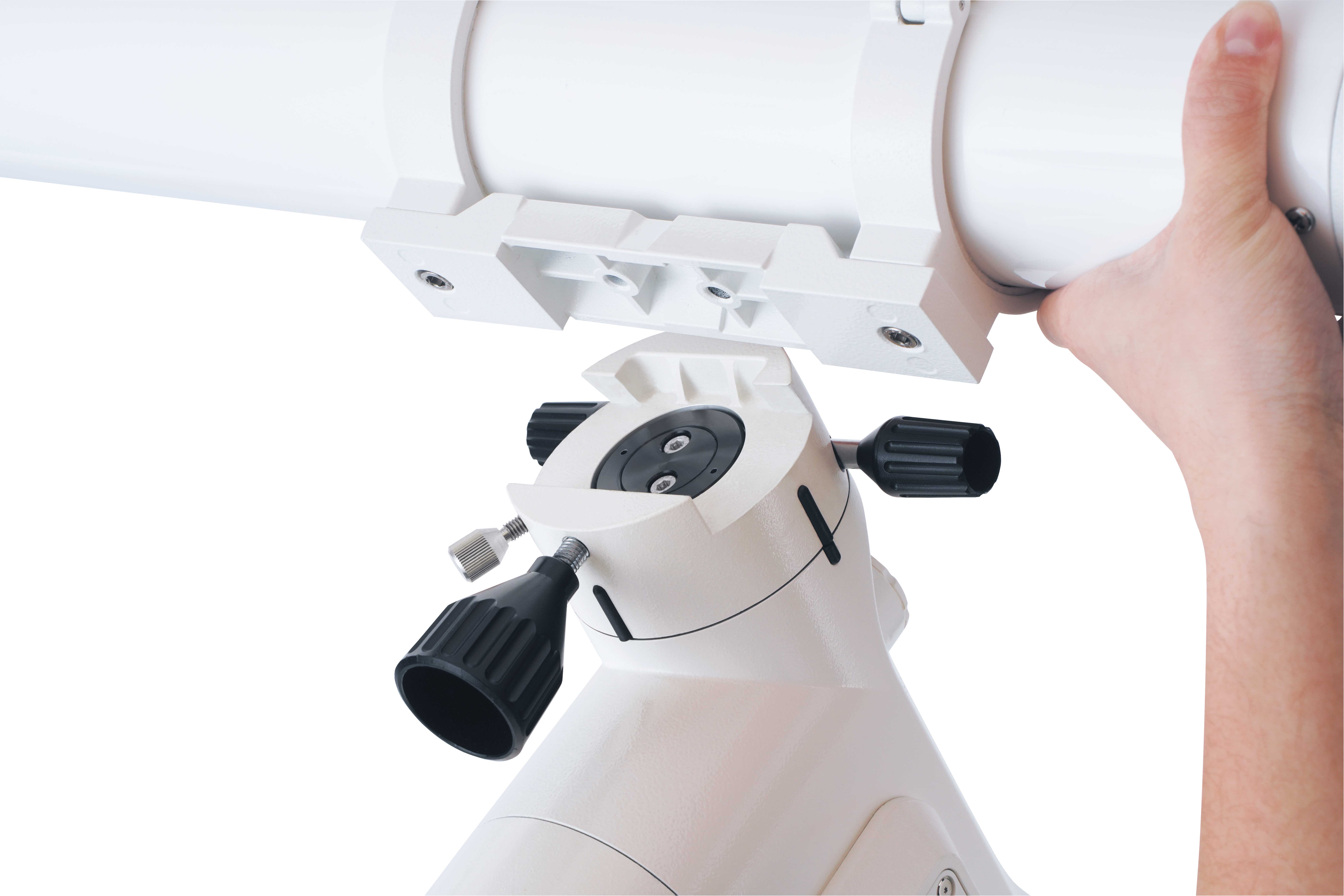 The attachment of the optical tubes is the dovetail system introduced by Vixen as a de facto standard. The optical tube can be set up easily without tools. Also, it is provided with a safety screw that prevents the optical tube from falling off.