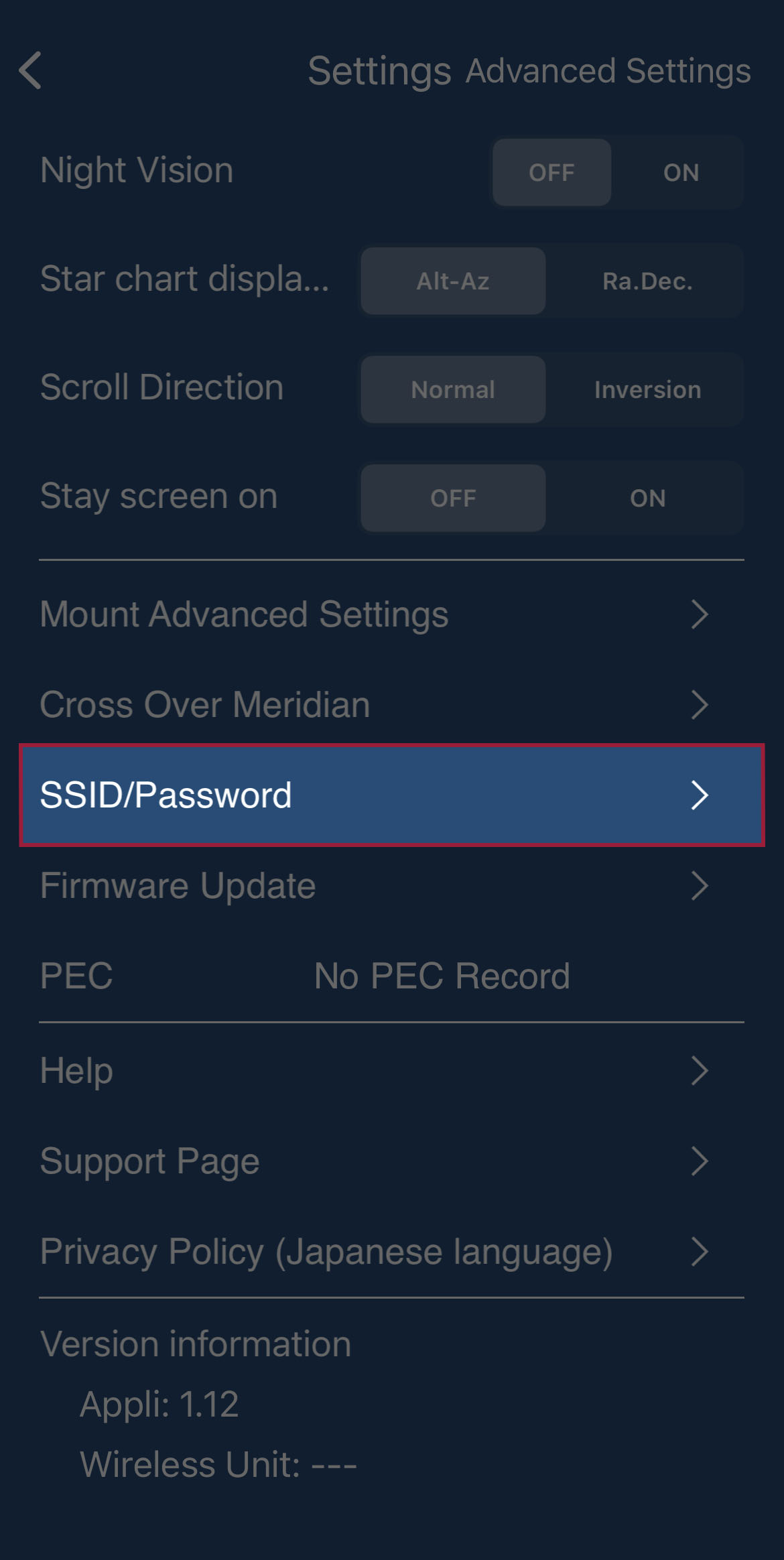 The “Wireless Unit” is included as standard, allowing you to control your equatorial mount with your smartphone. By installing a free dedicated smartphone app “STAR BOOK Wireless” on your device, you can use it as a controller.