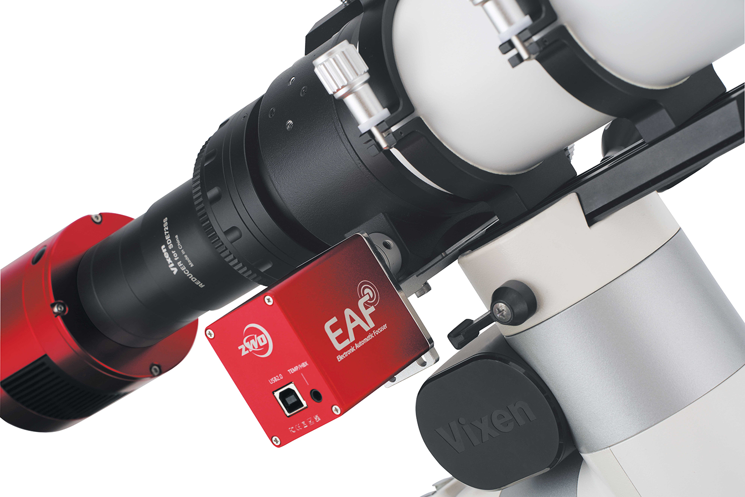 An electric focuser from ZWO or equivalent can also be attached.