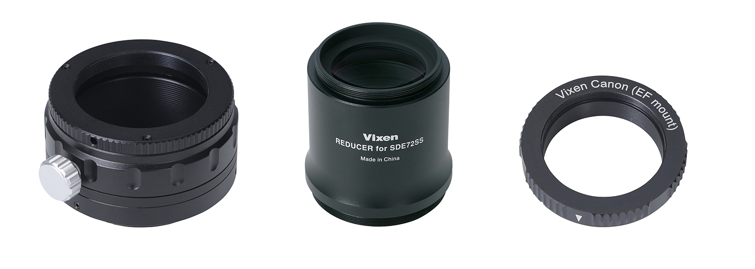 In combination with the dedicated SDE focal reducer, it quickly converts the telescope into a 346 mm (F4.8) telephoto lens for deep-sky imaging. Its short focal length makes it easy to handle, making it ideal for beginners in prime-focus astrophotography. It covers a 30 mm image circle, making it suitable for APS-C–size sensors or smaller.