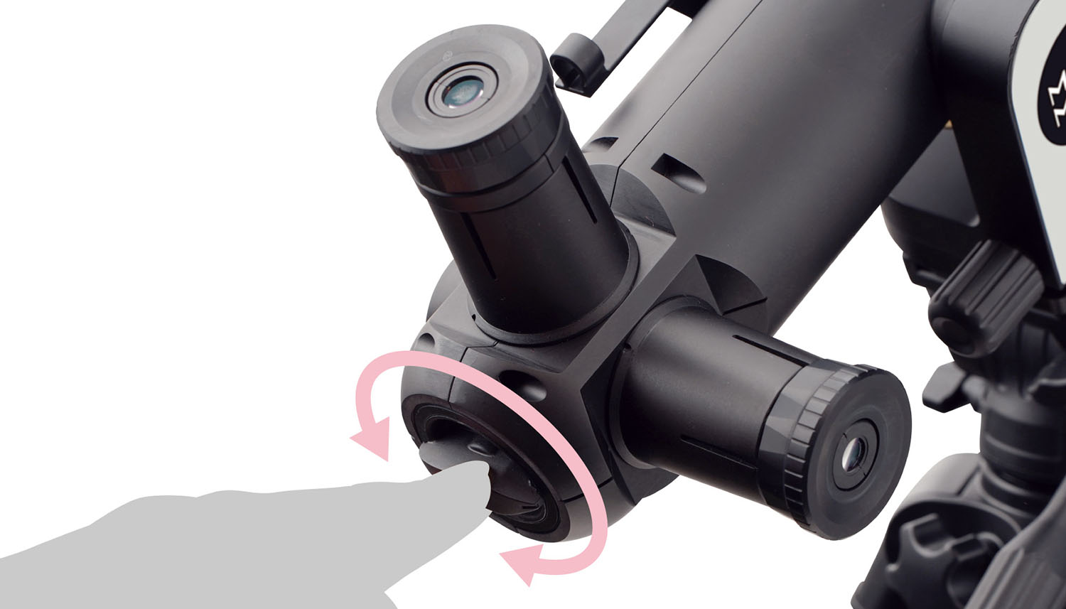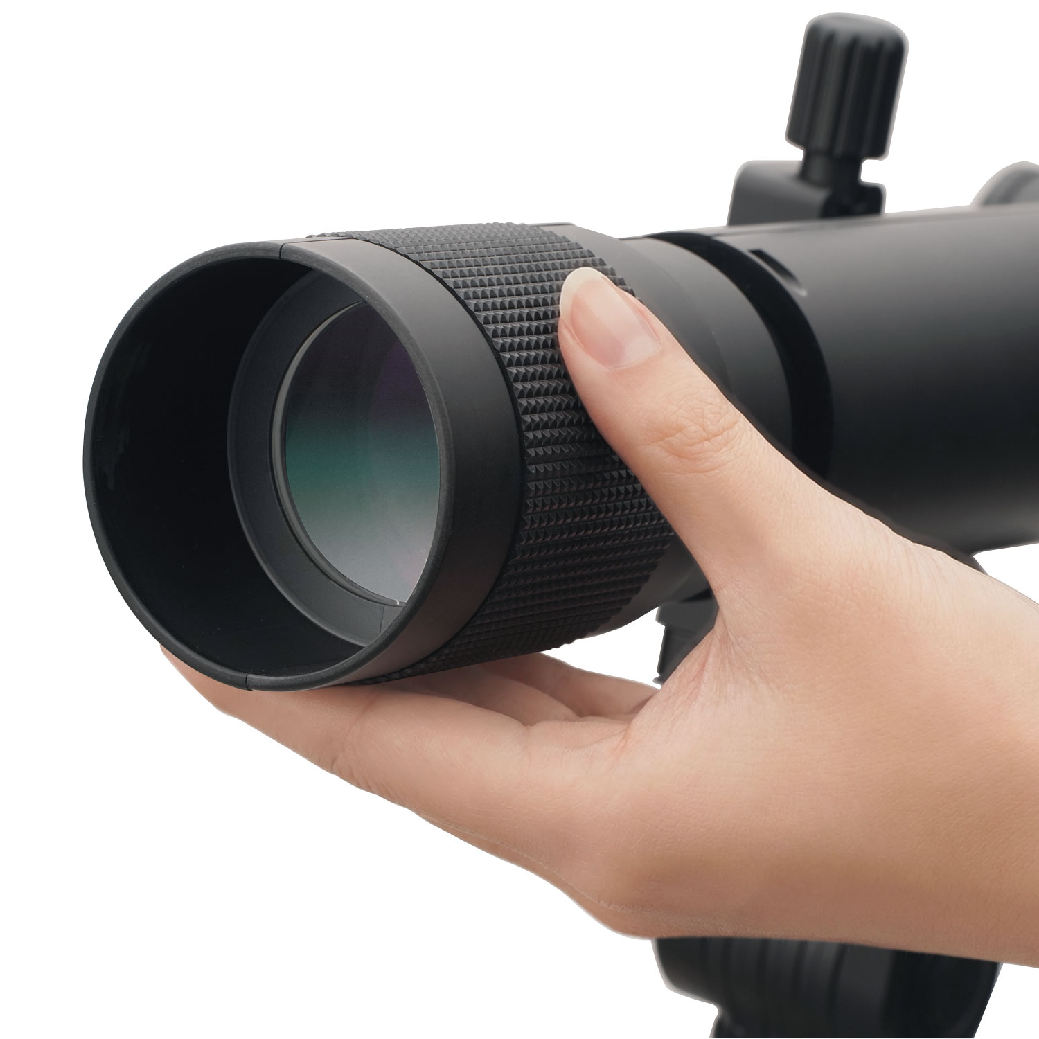 Focus can be adjusted by turning the knurled ring on the objective lens side. The distance from the eyepiece to the knurled ring is designed so that even children can easily reach it while looking through the telescope.