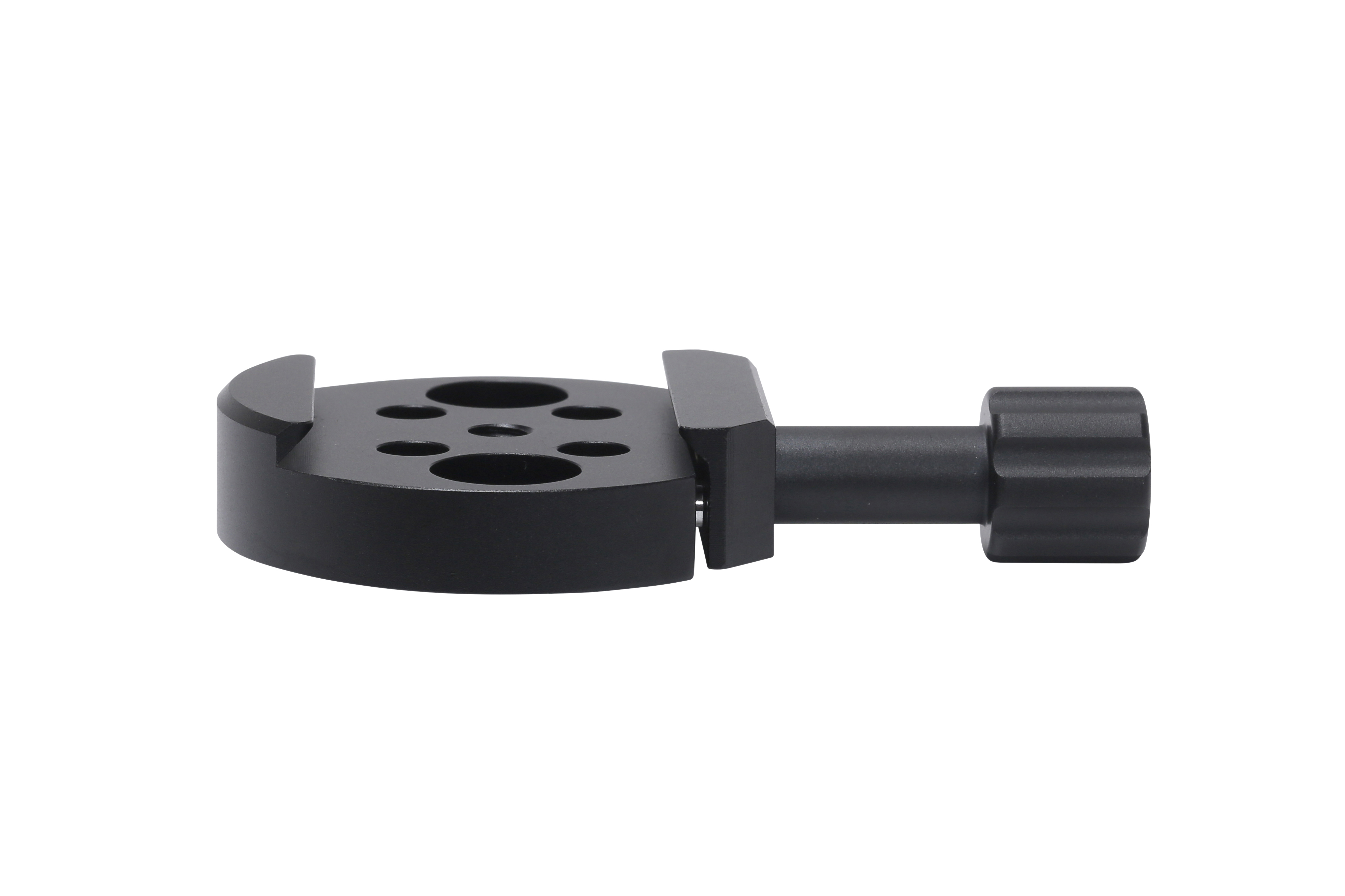 This holder features a quick-release design that clamps a dovetail plate from the side, allowing small telescopes and camera equipment to be attached and removed instantly.
