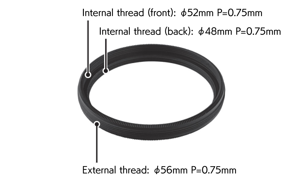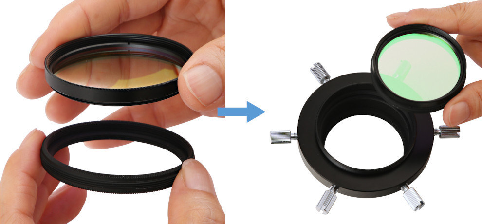 This adapter ring is designed to attach commercially available camera lens filters to Vixen telescope optical tubes (OTAs). Previously, filters could only be mounted on telescopes when used in combination with corrector lenses such as a flattener or reducer lens. By combining this adapter with a Vixen camera adapter*, the filters can now be attached to various Vixen optical tubes that were incompatible with the filter.