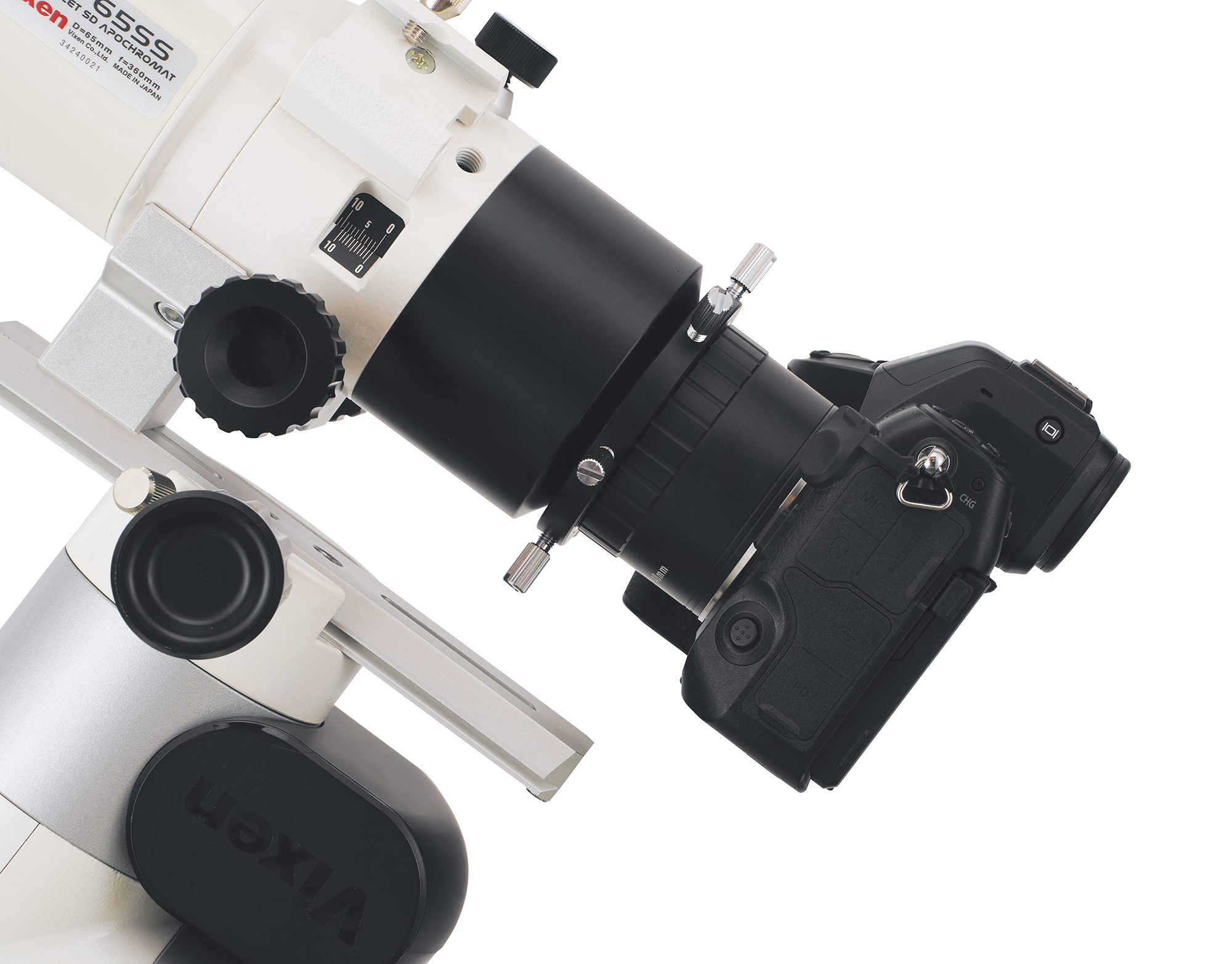 It enables you to attach a commercially available CMOS astro-imaging camera* or a 48mm thread adapter ring to the focuser, equipped with a 60mm female thread.