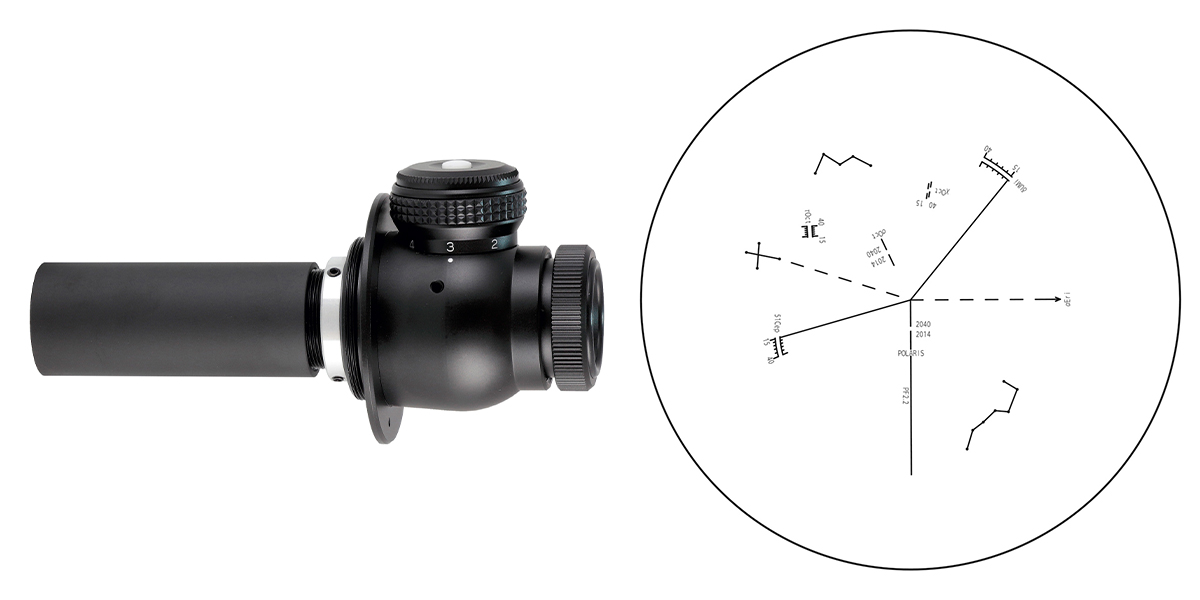 For more precise polar alignment, an optional polar alignment scope PF-LII, can be used by referencing Polaris. However, the Polar Meter is particularly effective in locations where Polaris is behind obstructions and not visible.