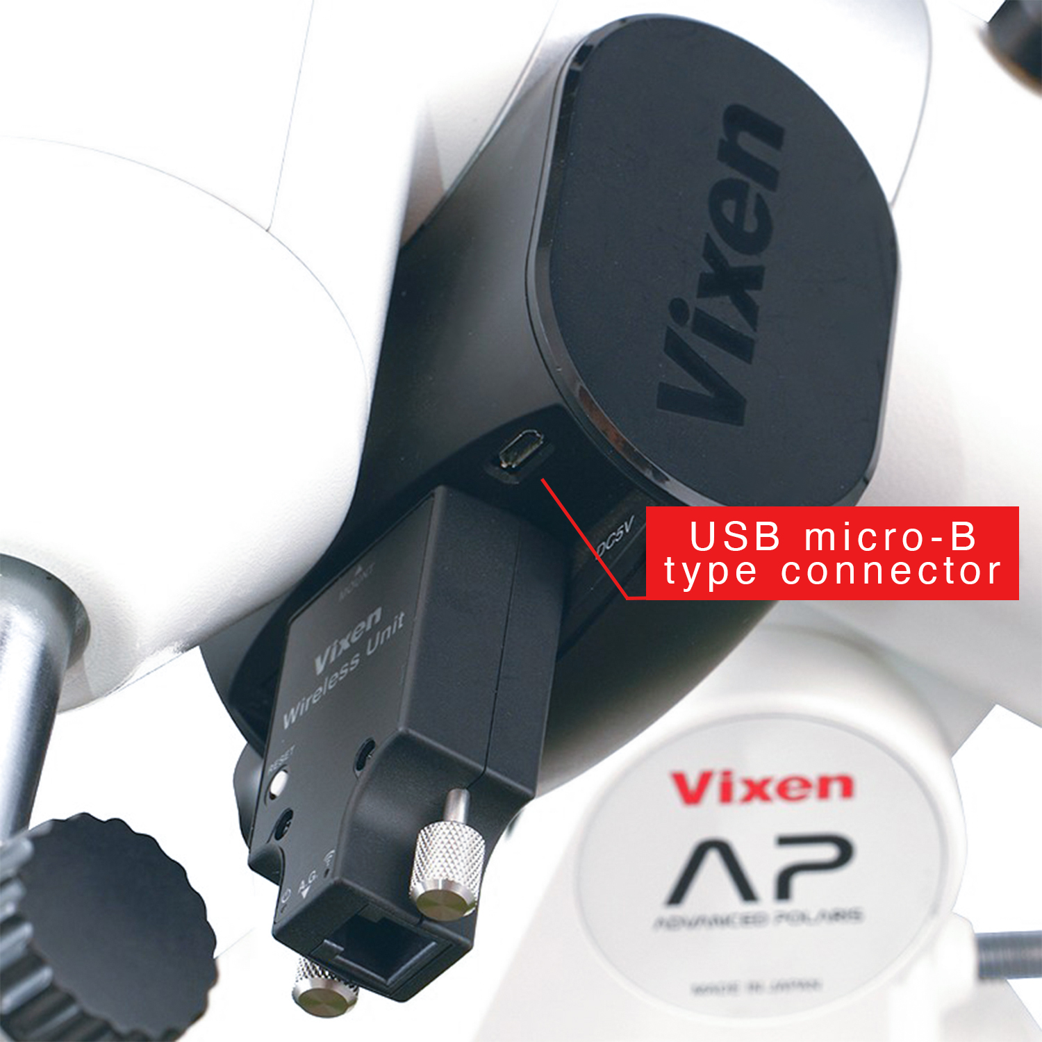 The AP-WL comes with a wireless unit as standard, enabling remote control of the equatorial mount.