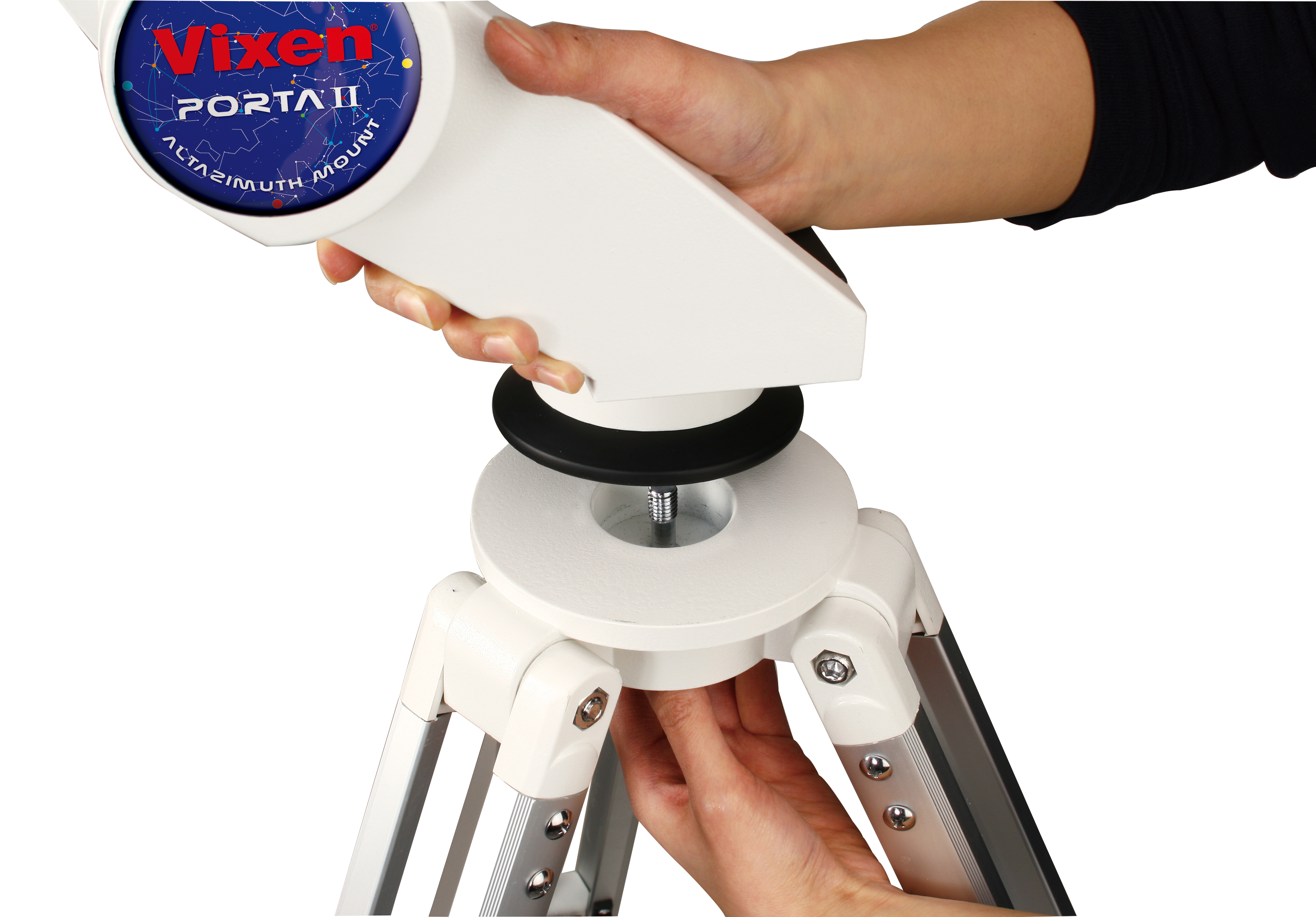 The PORTA II mount head can be detached from the tripod by loosening the fixing bolt underneath the tripod head, making it convenient for transport and storage. It can also be mounted on other Vixen tripods, such as the APP-TL130.