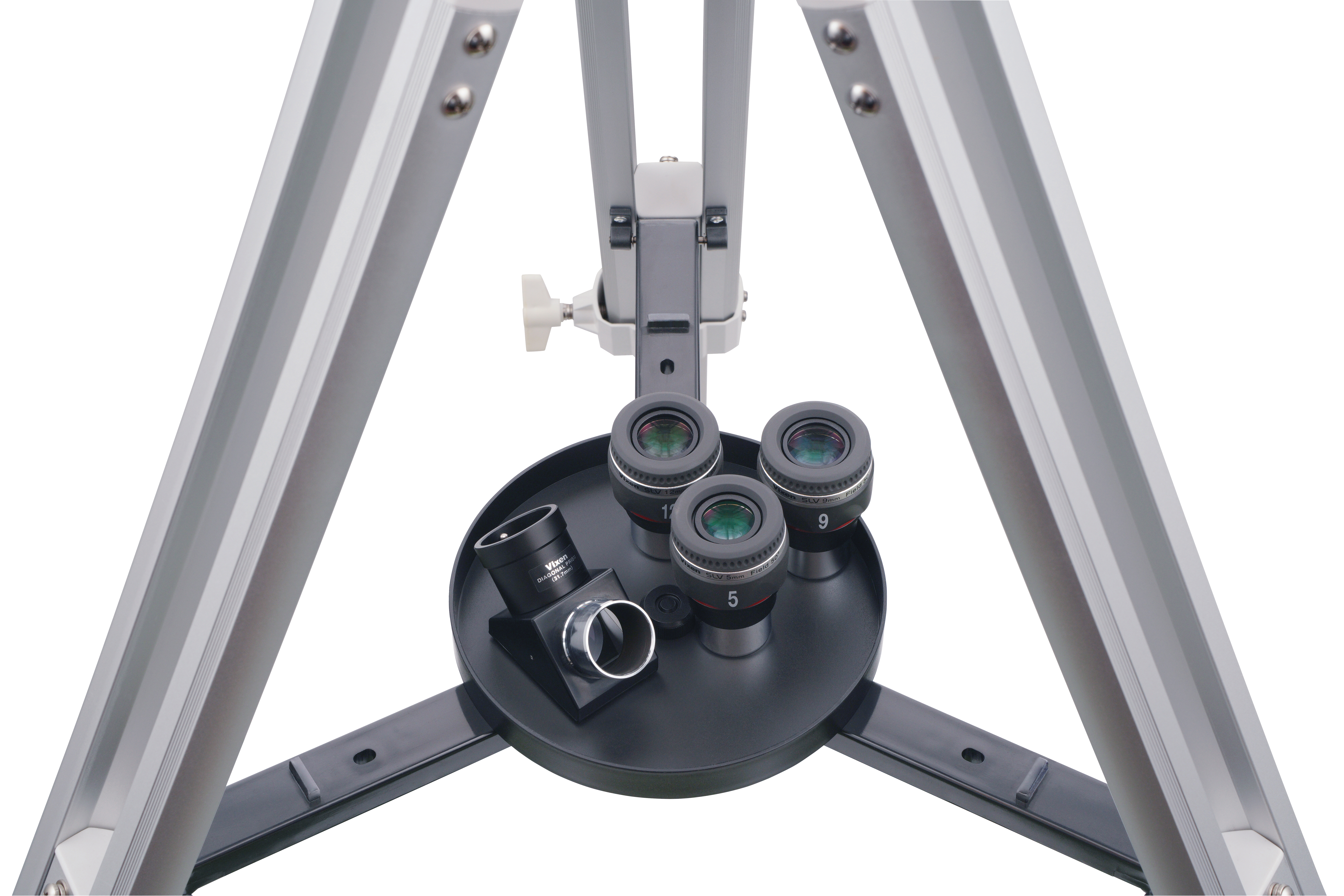 A round accessory tray is provided for small items such as eyepieces or cameras. It is useful during nighttime astronomical observations, when small parts are easily misplaced or lost.